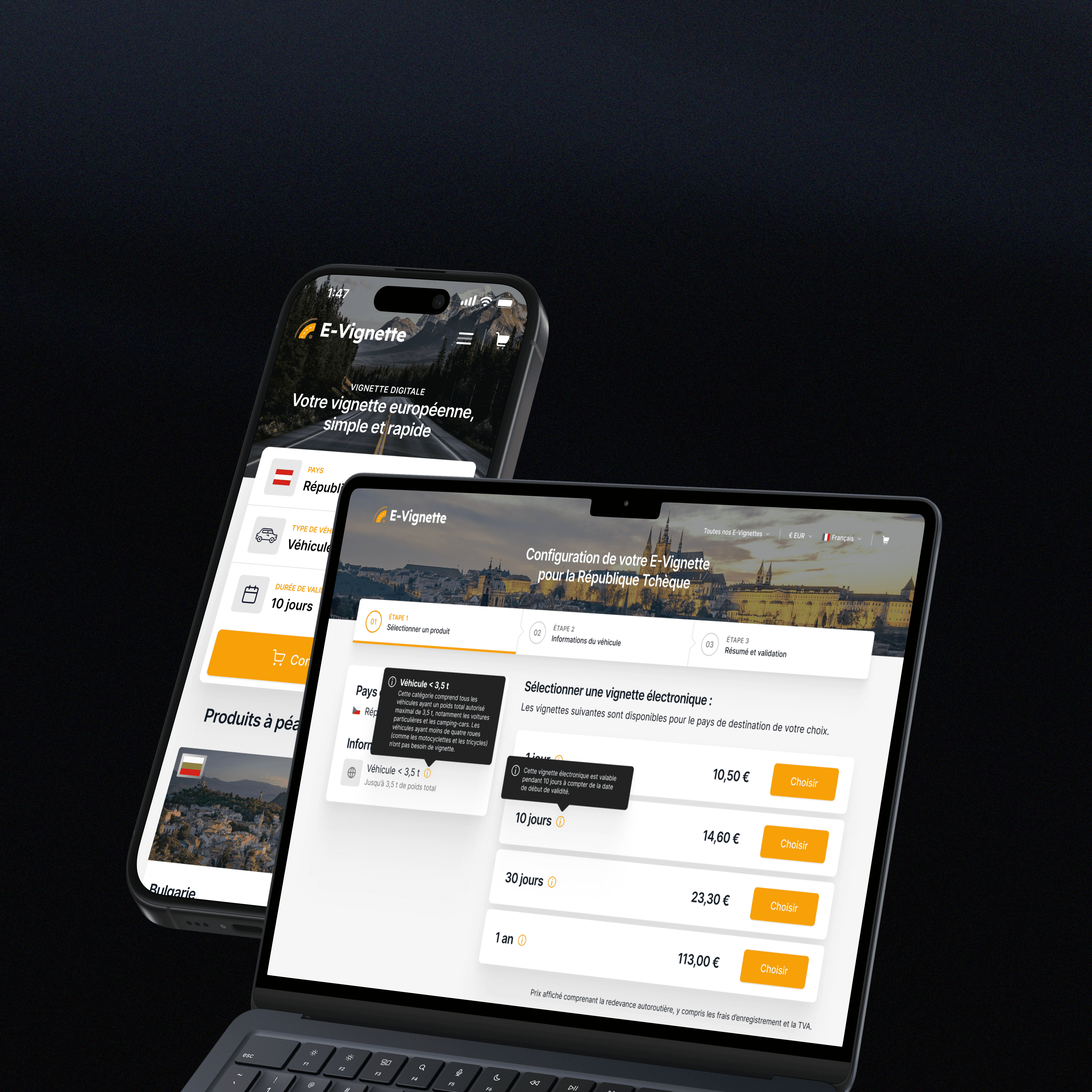Travelers often buy vignettes last minute, sometimes at the border. The product had to be fast, mobile-first, and frictionless, even under time pressure.